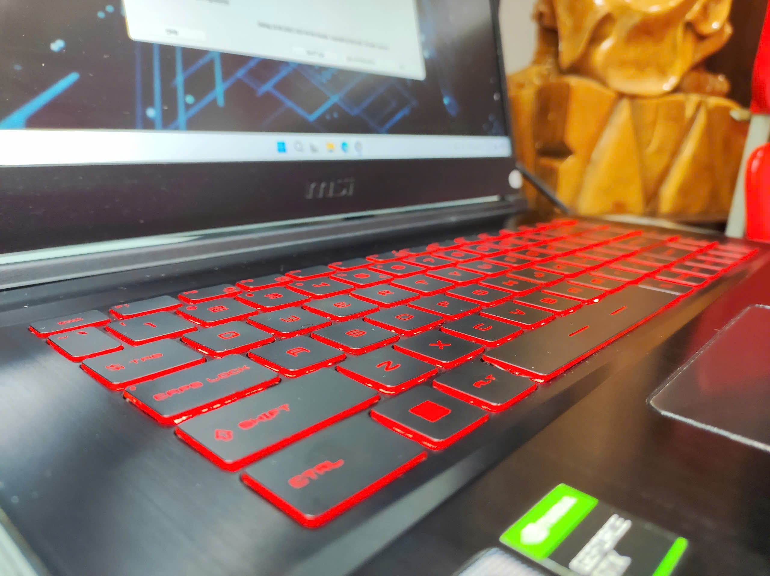 – **Bàn phím**: Bàn phím có đèn nền (backlit), giúp làm việc và chơi game trong điều kiện ánh sáng yếu, hành trình phím tốt, cho trải nghiệm gõ phím thoải mái.