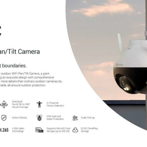 Camera wifi Ezviz, phá vỡ giới hạn thị giác. Camera C8C là Camera quét trái phải/nghiêng lên xuống ngoài trời có WiFi đầu tiên của. Một bước đột phá lớn kết hợp thiết kế tinh tế với chức năng toàn diện. Thu lại nhiều chi tiết hơn so với các camera ngoài trời thông thường, camera này đảm bảo khả năng bảo vệ ngoài trời toàn diện và đáng tin cậy.